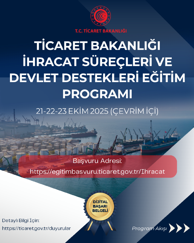 Türkiye’deki tüm iş çevrelerinin genel katılımına açık olarak ekte yer alan program akışı çerçevesinde 21-22-23 Ekim 2025 tarihlerinde çevrim içi bir eğitim programı gerçekleştirilecektir.