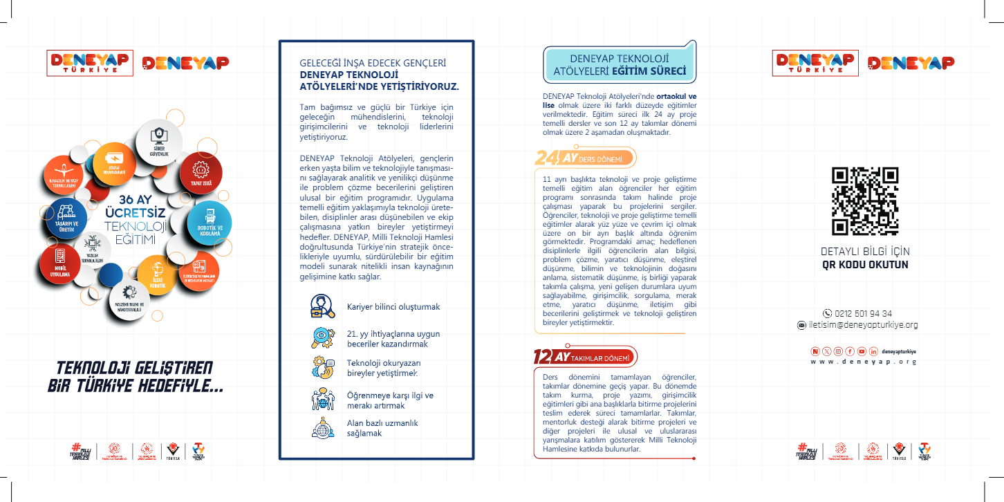 DENEYAP Teknoloji Atölyeleri, Millî Teknoloji Hamlesi doğrultusunda gençlerin teknoloji üretme yetkinliklerini geliştirmek amacıyla 81 ilde ücretsiz ve üç yıllık kapsamlı eğitim programı sunmaktadır.