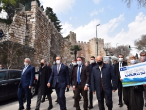 Hayat kaynağı olan suyun doğru kullanımına dikkat çekmek amacıyla Bursa Büyükşehir Belediyesi ve BUSKİ Genel Müdürlüğü tarafından 22 Mart Dünya Su Günü etkinlikleri kapsamında kortej yürüyüşü düzenlendi. Tophane’deki Saltanat Kapı önünden başlayan yürüyüşe Bursa Büyükşehir Belediye Başkanı Alinur Aktaş, BUSKİ Genel Müdürü Güngör Gülenç ile DOSAB Yönetim Kurulu Başkanı Ersan Özsoy, BUSKİ bürokratları, Bursa Mahalle Gönüllüleri ile vatandaşlar katıldı. Büyükşehir Belediye Bandosu eşliğinde gerçekleşen yürüyüşte, Mahalle Gönüllüleri ellerindeki dövizlerle suyun tasarruflu kullanımına dikkat çekti. Yürüyüşün ardından Orhangazi Parkı’nda düzenlenen törene Osmangazi Belediye Başkanı Mustafa Dündar, Bursa Milletvekili Ahmet Kılıç ile AK Parti İl Başkanı Davut Gürkan da katıldı.