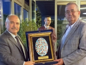 Duayen sanayicilerle 4 yıllık yönetim dönemindeki projeleri paylaşan Başkan Eski, daha sonra günün anısına herkese birer anı plaketi verdi.