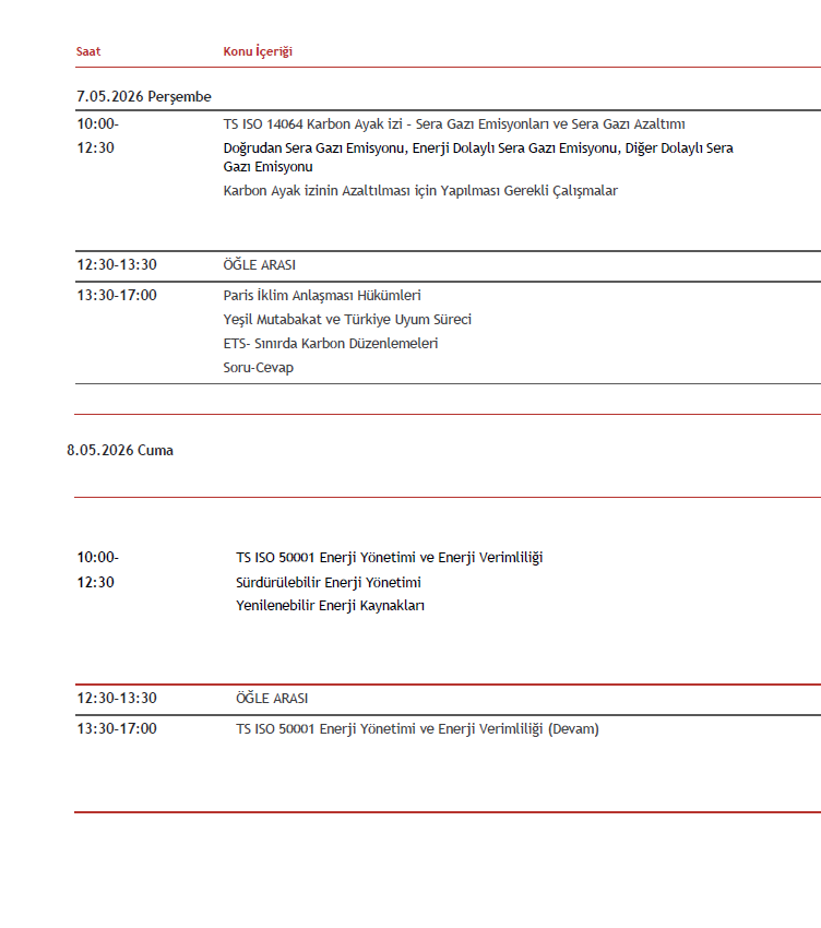 Yeşil OSB ve Su Verimliliği Eğitim Programımız 6-7-8 Mayıs 2026 tarihlerinde BUTEKOM Konferans Salonunda gerçekleştirilecektir. Eğitim programına linkten ulaşabilirsiniz.